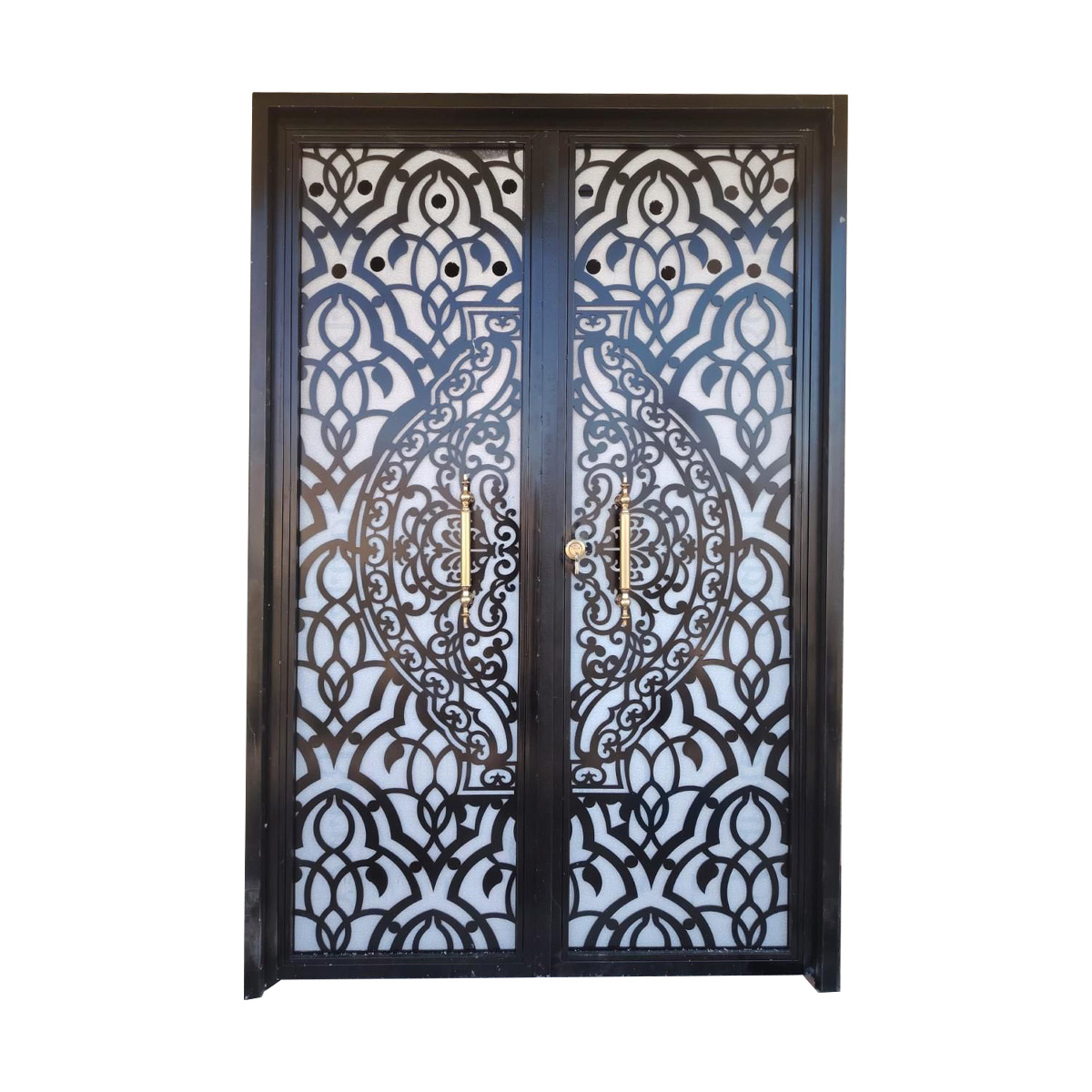 150Lx200H cm : أبواب حديد اسود خارجي – بابين – صناعة سعودية – مقاس