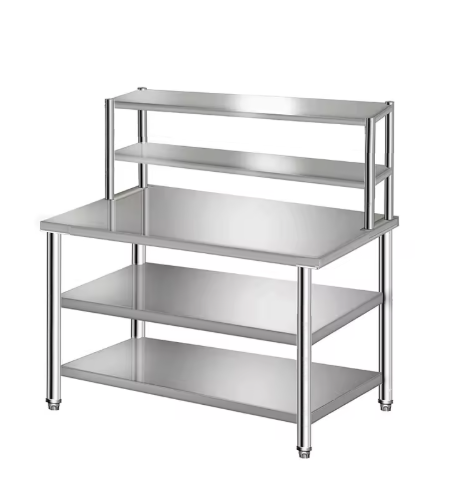 100Lx70Wx85+10H cm:طاولة تحضير برف وسطي سفلي- رفين علوي- بزاوية- صناعة سعودية- مقاس